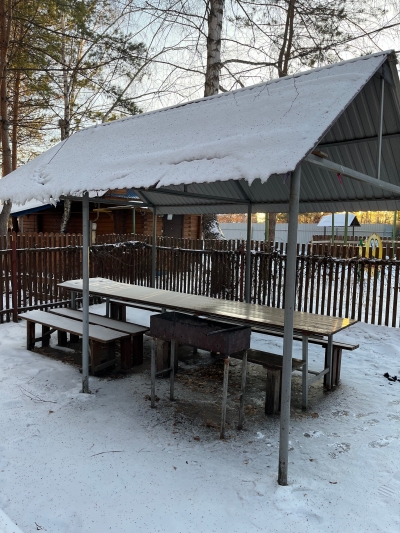 Рядом расположена беседка с мангальной зоной. В будние дни цена составляет 1200 рублей в час.